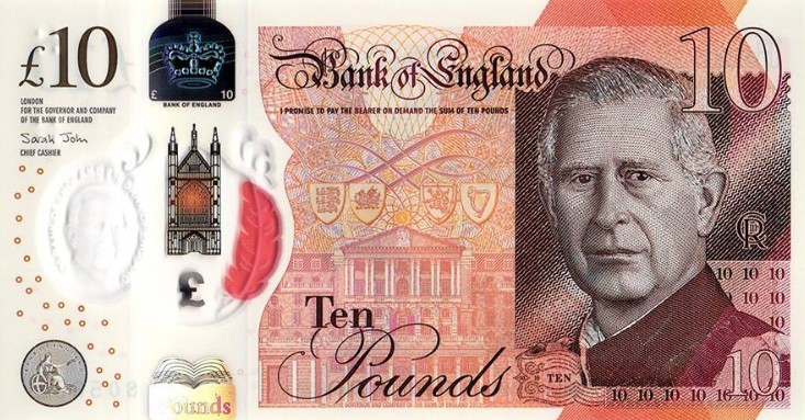 The portrait of King Charles III replaced Queen Elizabeth II on the front right in intaglio and printed on the clear window on the left. There were no other changes to the exisitng designs.